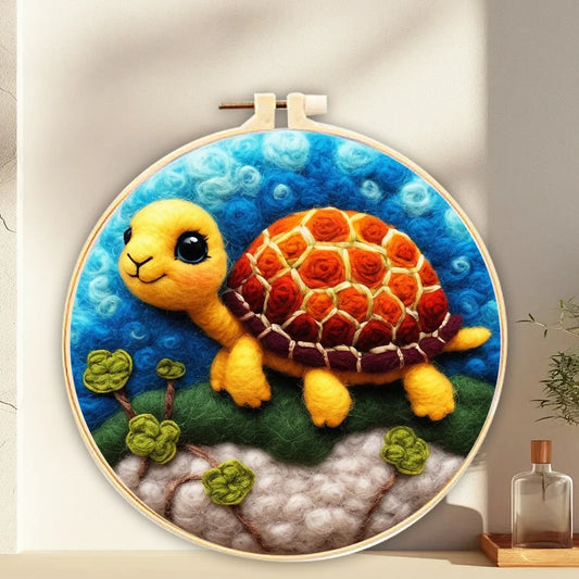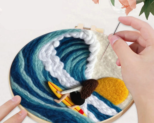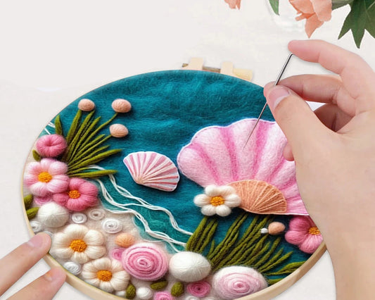 Nadelfilzen ist ein originelles, kreatives Hobby, bei dem man mit kardierter/gekämmter Wolle und einer Filznadel wunderschöne Bilder gestalten kann. Durch das Aufnähen/Aufnadeln der Wolle auf die Leinwand werden die Wollfasern zusammengepresst/verfilzt, um schöne bunte Reliefs zu schaffen und Blumen, Landschaften oder Tiere wie ein Künstler zu sticken.